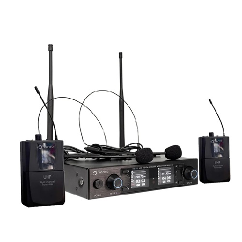 Micrófono Inalámbrico Doble Diadema Headset1 Negros con Doble Emisor Bodypack4 y Receptor WM232 UHF Vento